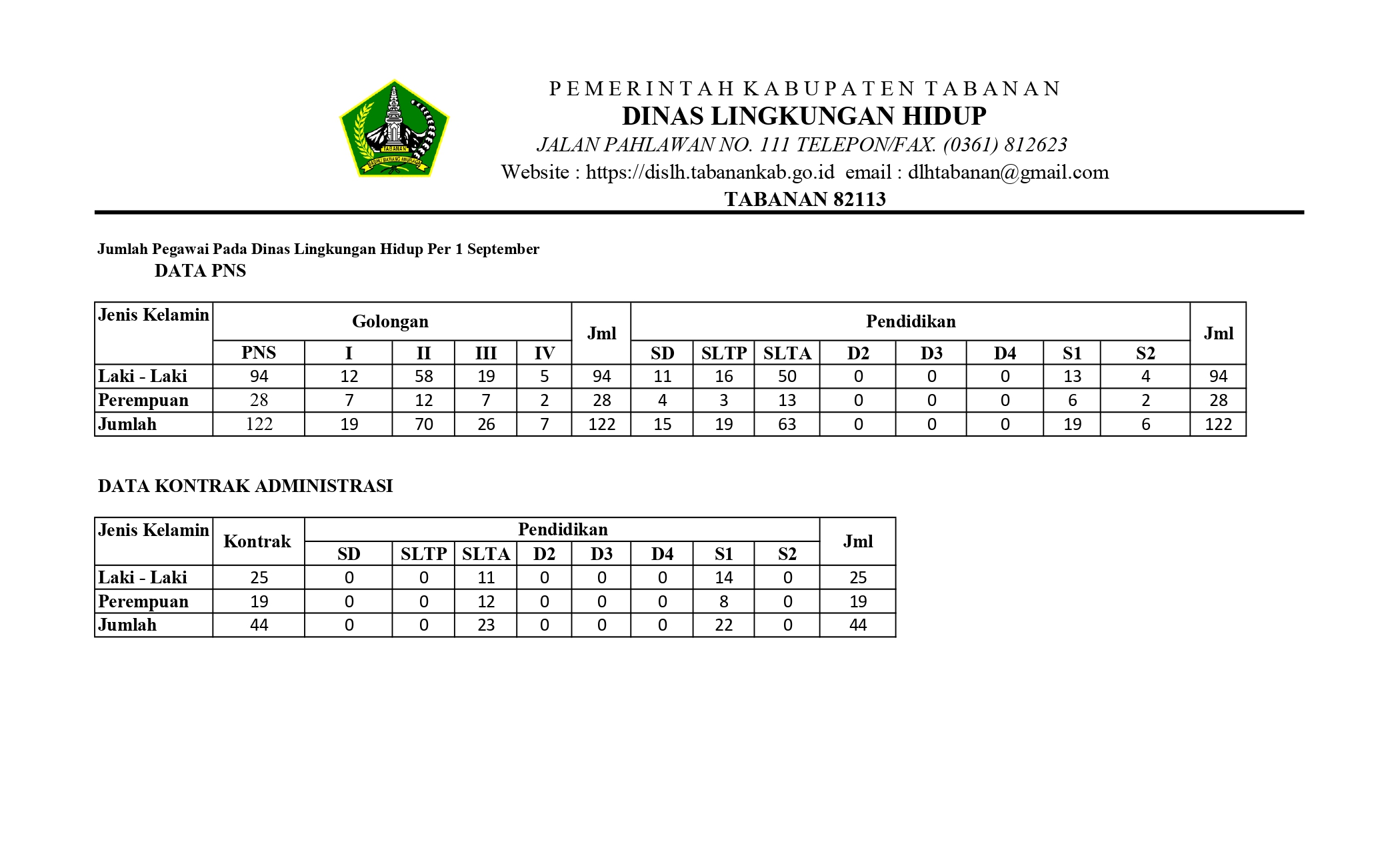 Jumlah Pegawai Pada Dinas Lingkungan Hidup Tahun 2024